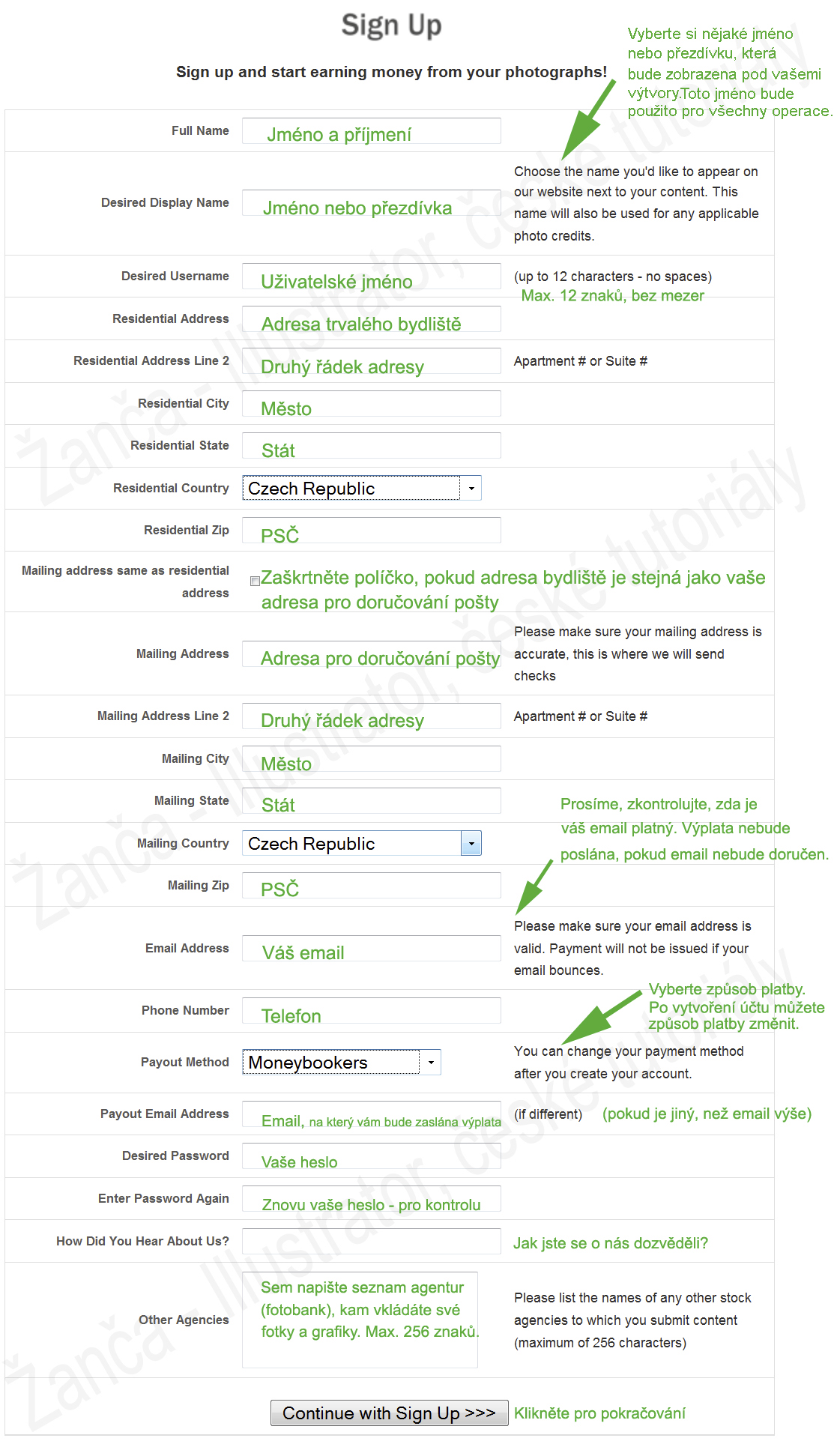 Aby jste mohli konečně začít, musíte se na Shutterstocku zaregistrovat (dole na stránce klikněte na : "Not a Member? Sign Up to make $$$ now!").
